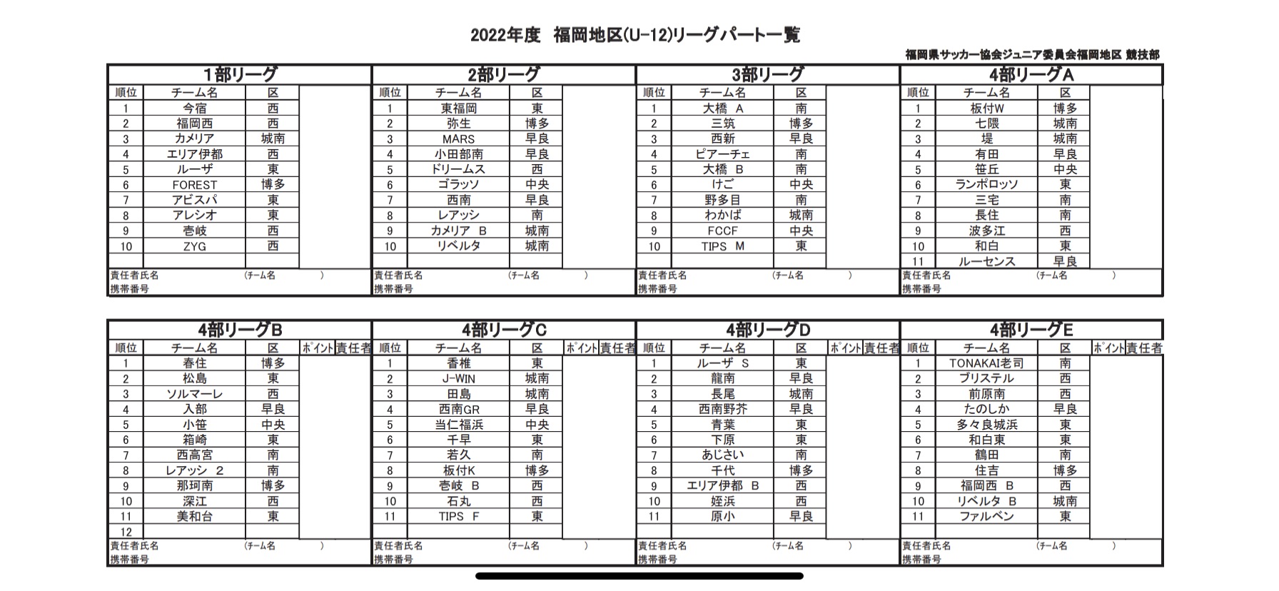2022年度 福岡地区 U12 リーグパート
